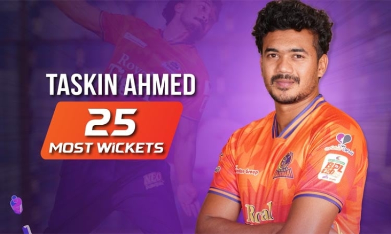 Taskin Ahmed led the bowling chart with 25 wickets, highest by any player in BPL history. In the top 10 bowlers, only three were overseas players.