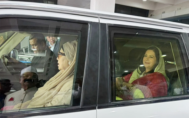 Zubaida Rahman and Khaleda Zia's younger son late Arafat Rahman's wife Syeda Sharmila Rahman accompanied the three-time former prime minister while returning home from London after four months of her medical treatment at the prestigious London Clinic.